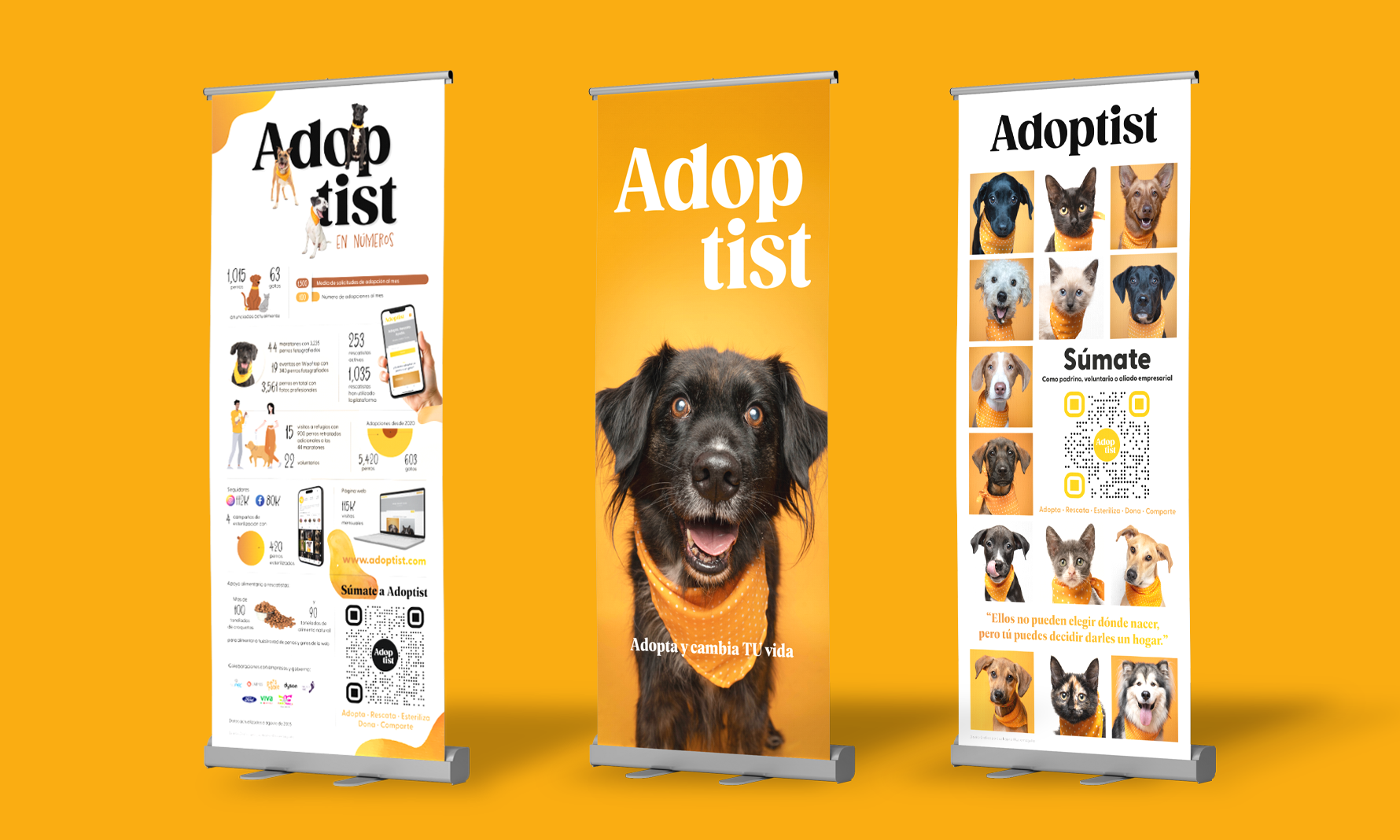 Se desarrolló un brochure informativo que presenta la historia de la empresa, su labor y resultados en cifras; además de banners impresos para eventos de adopción, un certificado de constancia de adopción y materiales visuales e infografías que comunican con empatía y claridad el impacto de su trabajo.