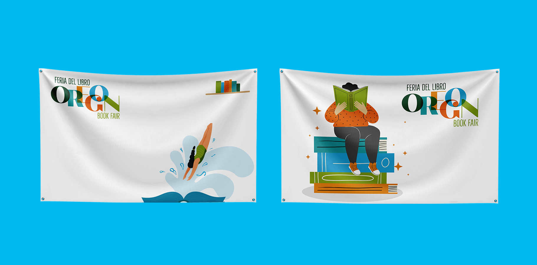 La papelería física incluyó banners, gafetes, stickers, señalética, programas impresos y materiales de bienvenida, todos diseñados con una estética coherente y cálida que reforzó la identidad visual de la feria y su mensaje central: libros que nos unen, historias que nos pertenecen.